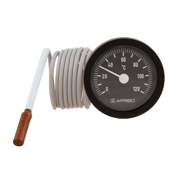 Products Our motto "Technology for Environmental Protection" has long been an inherent part of our product development philosophy and product range. We strive to improve the environment, to make processes which work with greater environmental compatibility and to avoid putting a strain on the environment. We offer you a multitude of innovative solutions, new products and smart concepts. More Informations Industries & Topics Industries & Topics Overview Fuel oil components Fuel oil components Overview Fast and clean oil filter change Avoiding fungal attacks in biofuel More performance with the sintered plastic sieve AFRISO Smart Home AFRISO Smart Home Overview Gateway HG 02 Products Products Overview AFRISOhome App Alexa Smart home applications Smart home applications Overview Leakage security Security Stand-alone applications Stand-alone applications Overview Getting started with AFRIShome Smart Home Craft 4.0 Craft 4.0 Overview OEM-Manifold systems Hydraulic Balancing Hydraulic Balancing Overview VarioQ Vario-DP Tank conversion Hygienic processes AFRISO Smart Home AFRISO Smart Home offers innovative solutions for intelligent home automation. With modern sensors and actuators, you can easily and conveniently control your home. More Informations Service-Center Service-Center Overview Service Contact persons Data exchange formats Catalogs Service-Center Flexible, cost-aware, on schedule, solution-oriented and fast – the AFRISO team always provides the decisive added value. More Informations Training & Events Training & Events Overview Exhibitions Exhibitions Overview SHK+E 2026, Essen IFH Intherm 2026, Nuremberg GET Nord 2026, Hamburg Search Domestic technology Temperature measuring instruments for domestic technology THK 52 Images 2 THK 52 Thermometers with capillary tube Variants Benefits ideal for boilers and water heaterscorrosion-resistant, highly impact-resistant plastic housingmany customised versions available Application Heating and plumbing, e.g. boilers, water heaters, hot water storage tanks Variants Technical data Variants Nominal sizeNominal sizeHousingpush on bezelPointerDialScaleRangecapillary lengthTypePart no.52 mmgreyblackwhiteblackwhite0/120 °C500 mmTHK 526750210552 mmgreyblackwhiteblackwhite0/120 °C1000 mmTHK 526750211552 mmgreyblackwhiteblackwhite0/120 °C1500 mmTHK 526750212552 mmgreyblackwhiteblackwhite0/120 °C2000 mmTHK 5267502135 in-stock items manufactured goods Technical data Nominal size52 - 52Range0/120 °CMeasuring principleLiquid fillingOperating temperature rangeMedium: Full scale valueAmbient: max. 70 °COperating pressurewithout pressureDegree of protectionIP 32 (EN 60529) Standard design ConnectionProbe: ∅ 6 x 30 mm, CopperCapillary tube: Copper with PVC coating (R3, grey)DialPlastic, blackScaling whitePointerPlastic, whiteHousingPlastic (ABS), greyBezelTHK 52: push on bezelKunststoff (ABS), schwarzcapillary length500 mm Related products