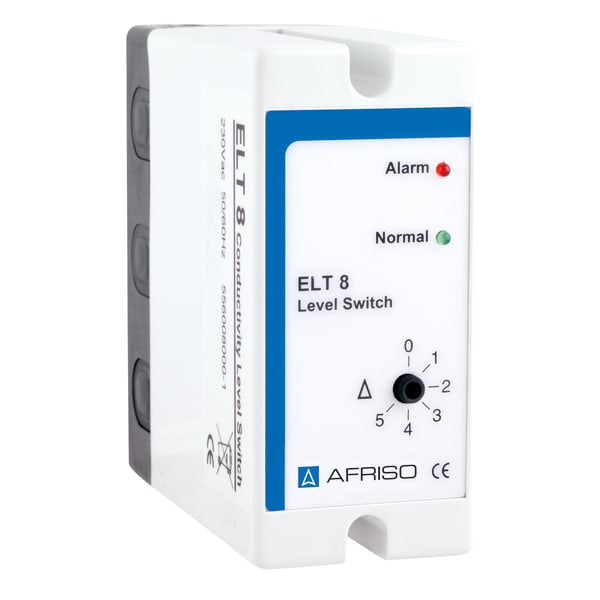 Products Our motto "Technology for Environmental Protection" has long been an inherent part of our product development philosophy and product range. We strive to improve the environment, to make processes which work with greater environmental compatibility and to avoid putting a strain on the environment. We offer you a multitude of innovative solutions, new products and smart concepts. More Informations Industries & Topics Industries & Topics Overview Fuel oil components Fuel oil components Overview Fast and clean oil filter change Avoiding fungal attacks in biofuel More performance with the sintered plastic sieve AFRISO Smart Home AFRISO Smart Home Overview Gateway HG 02 Products Products Overview AFRISOhome App Alexa Smart home applications Smart home applications Overview Leakage security Security Stand-alone applications Stand-alone applications Overview Getting started with AFRIShome Smart Home Craft 4.0 Craft 4.0 Overview OEM-Manifold systems Hydraulic Balancing Hydraulic Balancing Overview VarioQ Vario-DP Tank conversion Hygienic processes AFRISO Smart Home AFRISO Smart Home offers innovative solutions for intelligent home automation. With modern sensors and actuators, you can easily and conveniently control your home. More Informations Service-Center Service-Center Overview Service Contact persons Data exchange formats Catalogs Service-Center Flexible, cost-aware, on schedule, solution-oriented and fast – the AFRISO team always provides the decisive added value. More Informations Training & Events Training & Events Overview Exhibitions Exhibitions Overview SHK+E 2026, Essen IFH Intherm 2026, Nuremberg GET Nord 2026, Hamburg Schulungen & Trainings Schulungen & Trainings Overview Heizen mit flüssigen Brennstoffen Inhouse-Schulung - Heizen mit flüssigen Brennstoffen Inhouse-Schulung Heizölverbraucheranlagen Smart Home Experte Search Industrial technology Alarm units, gas alarm systems and gas analysers 53503A CoFox-ELT 8 DC 24V Images 3 Back CoFox® ELT 8 | 53503A conductivity level switch in-stock items Documents Benefits for conductive media such as water, waste water, emulsions and many moreMin. or max. fail-safe mode adjustabletwo voltage-free relay outputslow response threshold Application Suitable for use with electrically conductive liquids whose level is to be limited or controlled. The liquids such as water, emulsions or waste water must neither foam excessively nor be viscous or adhesive (bridging). CoFox® ELT 8 can be operated with one probe as a level switch or with two probes for controlling pumps, valves, etc (start/stop). Can also be used as a water alarm unit, for example in control stations or IT rooms, in conjunction with floor water probe BWS 10-1. Description Level switch in wall mounting housing with visual alarm and operation indicator. CoFox® ELT 8 is designed for continuous operation and operates on the basis of conductivity. If a probe electrode is in contact with the liquid, this closes a circuit to the tank wall or to a second electrode via the liquid. The relay outputs switch. The sensitivity is adjustable. 2 voltage-free relay contacts are provided for switching functions.Switching functions:Level switch:The relay switches in case of contact or loss of contact of the probe with the liquid. The switching point must be adjusted according to the conductivity of the liquid.Level controller for filling:A minimum of 2 probe rods are required. Set the internal switch to "Max" (H). The relay switches on when the min. probe loses contact with the liquid. Relay de-energises when the max. probe comes into contact with the liquid.Level controller for emptying:A minimum of 2 probe rods are required. Set the internal switch to "Min" (L). The relay switches on when the max. and min. probes come into contact with the liquid. The relay de-energises when the min. probe loses contact with the liquid. Technical data Downloads Accessories Technical data probe connections1 probe circuit(several probes can be connected in parallel)Response threshold2.5 – 60 kOhmfully adjustableOperating temperature rangeAmbient: -10/+60 °CSupply voltageDC 24 Vprobe circuitmax. AC 3 VSwitching outputRelay contact: 2 voltage-free changeover contactsContact rating: AC 250 V, 2 Avisual indicationLED green: Mains operationLED red: alarm conditionFail-safe modeintegrated selector for min. or max. fail-safe mode (low/high)Housingwall mounting housing with plug-in base made of impact-resistant plastic (ABS)W x H x D: 53 x 113 x 108 mmWeight: 400 gDegree of protection: IP 30 (EN 60529)Scope of deliveryLevel switch without probe Downloads Füllstandgrenzschalter CoFox® ELT 8 Manuals PDF Download Accessories Alarm units, probes and signalling devices Abb. Bezeichnung WLH 1 | 61020 Accessories and spare parts for level sensors, overfill prevention systems and level controllers Abb. Bezeichnung KVA | 40041 Probes and sensors Abb. Bezeichnung Bodenwassersonde BWS | 55112 wall mounting rail probe WSS | 55050 Function extensions Abb. Bezeichnung ZAG 01 | 40633 Accessories and spare parts for level indicators and level controllers Abb. Bezeichnung LSE 23 | 55323 LSM 01 | 55034 LSM 01 | 55021 LSM 02 | 55041 LSM 02 | 55044 LST 32 | 55332 Related products