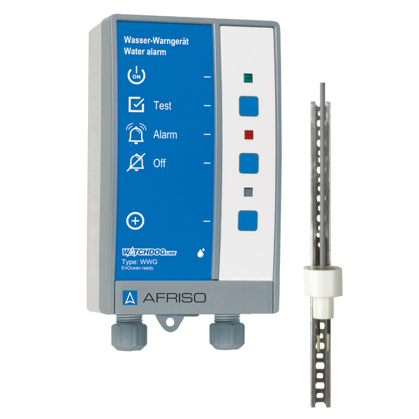 Water alarm unit WWG 2 like WWG 1, but with height-adjustable wall mounting rail probe.