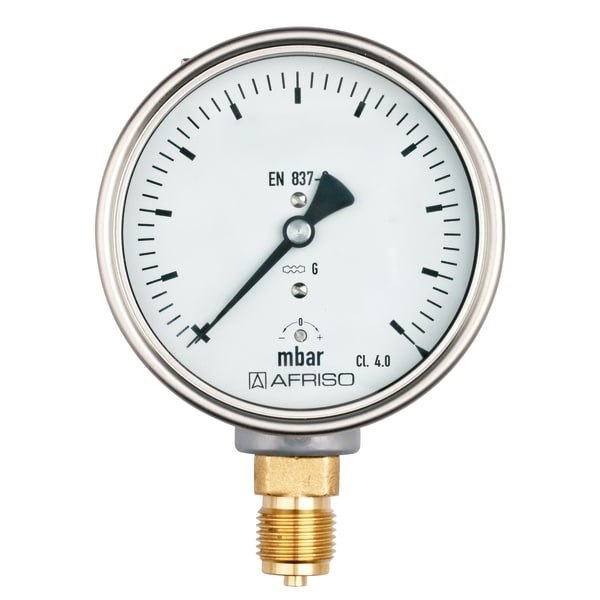 Products Our motto "Technology for Environmental Protection" has long been an inherent part of our product development philosophy and product range. We strive to improve the environment, to make processes which work with greater environmental compatibility and to avoid putting a strain on the environment. We offer you a multitude of innovative solutions, new products and smart concepts. More Informations Industries & Topics Industries & Topics Overview Fuel oil components Fuel oil components Overview Fast and clean oil filter change Avoiding fungal attacks in biofuel More performance with the sintered plastic sieve AFRISO Smart Home AFRISO Smart Home Overview Gateway HG 02 Products Products Overview AFRISOhome App Alexa Smart home applications Smart home applications Overview Leakage security Security Stand-alone applications Stand-alone applications Overview Getting started with AFRIShome Smart Home Craft 4.0 Craft 4.0 Overview OEM-Manifold systems Hydraulic Balancing Hydraulic Balancing Overview Vario-DP Tank conversion Hygienic processes AFRISO Smart Home AFRISO Smart Home offers innovative solutions for intelligent home automation. With modern sensors and actuators, you can easily and conveniently control your home. More Informations Service-Center Service-Center Overview Service Contact persons Data exchange formats Catalogs Service-Center Flexible, cost-aware, on schedule, solution-oriented and fast – the AFRISO team always provides the decisive added value. More Informations Training & Events Training & Events Overview Exhibitions Exhibitions Overview SHK+E 2026, Essen IFH Intherm 2026, Nuremberg GET Nord 2026, Hamburg Schulungen & Trainings Schulungen & Trainings Overview Heizen mit flüssigen Brennstoffen Inhouse-Schulung - Heizen mit flüssigen Brennstoffen Inhouse-Schulung Heizölverbraucheranlagen Smart Home Experte Search Industrial technology Mechanical pressure measuring instruments KP160 D401 Images 3 KP160 D401 Kapselfeder-Standardmanometer Typ D4 Variants Documents Info housing ⌀ (nominal size)160 mmConnectionG½Balignmentbottomaccuracy class4,0standardEN 837-3 Benefits with zero correctionoptional overpressure and/or underpressure safety 10 x FSDextremely low measuring ranges from 0/6 mbarGOSSTANDART-certified Application For gaseous, dry media which do not attack copper alloys.! For measuring gas or vapour, observe the table "Selection Criteria as per EN 837-2" (see appendix)! Variants Technical data Technical drawings Downloads Options Variants RangeMounting typeTypePart number-6/0 mbardirectKP160 D40135151401-10/0 mbardirectKP160 D40135152401-16/0 mbardirectKP160 D401351534010/6 mbardirectKP160 D401351634010/10 mbardirectKP160 D401351644010/16 mbardirectKP160 D40135165401 in-stock items manufactured goods Technical data TypeD4Nominal size160 - 160accuracy class (EN 837-3/6)4,0ranges (EN 837-3/5)see ordering tableapplication areastatic load: Full scale valuedynamic load: 0.9 x full scale valueoverload safety: 1.3 x full scale valueOperating temperature rangeMedium: max. 60 °CAmbient: -20/+60 °CTemperature performanceIndication error when the temperature of the measuring system deviates from the normal temperature of 20 °C:bei Temperaturzunahme ca. ± 0,6 %/10 K,falling temperature approx. ± 0.6 %/10 Kvom jeweiligen SkalenendwertDegree of protectionNG 160: IP 33 (EN 60529) Standard design ConnectionBrass, bottomMeasuring elementCapsule element, CuBe alloymovementBrassZero correctionfrom the frontSealNBR (Perbunan)DialAluminium, weißScaling blackPointerAluminium, schwarzHousingEdelstahl 304bayonet bezelEdelstahl 304windowD401: Instrumentenglas Technical drawings Click the corresponding image for detail views, additional information and dimension tables. Bottom connection Dimensions (mm) NG a b∅c c1 c2 G h SW 63 10,8 40 5 2 13 G¼B 53 14 100 15,6 49 6 3 20 G½B 86 22 160 17,5 50 6 3 20 G½B 116 22 Downloads AFRISO_EU-KONFORMITAETSERKLAERUNG_DRUCKGERAETE_DE.PDF Industrial technology PDF Download Montage Manometer Manuals Industrial technology PDF Download Rohrfeder-, Kapselfeder-, Plattenfeder-, Membranfedermanometer für Differenzdruck Manuals Industrial technology PDF Ukrainian German German Options Options for capsule pressure gauges Abb. Bezeichnung accuracy class 1.0 NG 160 | 38181 connection socket nickel-plated NG 160 | 38087 throttle screw brass NG 160 hole 0.3 – 0.5 – 0.7 mm (please specify) | 38100 3-hole fixing, panel mounting bezel stainless steel 304 polished NG 160 | 37610 back flange stainless steel 304, vibratory-finished NG 160 | 38051 bayonet bezel stainless steel 304 polished NG 160 | 38055 Housing stainless steel 304 polished NG 160 | 37614 red mark on dial NG 160 | 38187 1 reference pointer, red NG 160 DK external rotary knob adjustment | 38191 laminated safety glass window NG 160 | 38075 special mounting position NG 160 | 38150 printing block creation per scale and colour NG 160 scale design as per EN 837-1, others on request | 38156 additional colour NG 160 | 38168 3-hole fixing, panel mounting bezel (bayonet type) stainless steel 304 polished NG 160 for factory-mounting | 38057 Related products