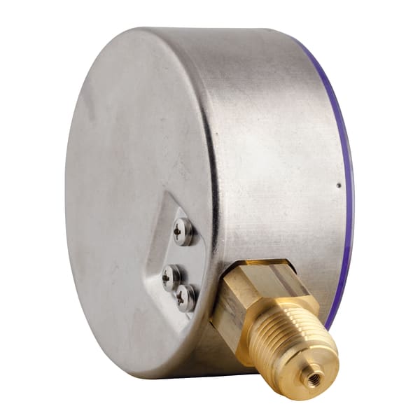 Images 7 Back Bourdon tube pressure gauges for industrial applications RF100I | 85315301 Bourdon tube pressure gauges for industrial applications Type D3 manufactured goods Documents Info Range0/10 barhousing ⌀ (nominal size)100 mmConnectionG½Balignmentbottomaccuracy class1,0standardEN 837-1Part no.85315301 Benefits for machine and plant engineeringrobust stainless steel housingmany customised versions available Application For gaseous and liquid media which are not highly viscous, do not crystallise and do not attack copper alloys.! For high measuring accuracy. For measuring gas or vapour, observe the table "Selection Criteria as per EN 837-2" (see appendix)! Technical data Technical drawings Downloads Technical data TypeD3Nominal size100 - 100accuracy class (EN 837-1/6)1,0ranges (EN 837-1/5)see ordering tableapplication areastatic load≤ 600 bar: Full scale value> 600 bar: ¾ x full scale valuedynamic load≤ 600 bar: 0.9 x full scale value> 600 bar: ⅔ x full scale valueshort-term≤ 600 bar: 1.3 x full scale value> 600 bar: Full scale valueOperating temperature rangeMedium: max. 60 °CAmbient: -20/+60 °CTemperature performanceIndication error when the temperature of the measuring system deviates from the normal temperature of 20 °C:bei Temperaturzunahme ca. ± 0,4 %/10 K,falling temperature approx. ± 0.4 %/10 Kvom jeweiligen SkalenendwertDegree of protectionIP 32 (EN 60529) Standard design ConnectionBrass, bottomMeasuring elementBourdon tube≤ 60 bar: "C" type tube, Copper alloy> 60 bar: helical tube, stainless steel 316 Ti/316 LmovementBrassDialAluminium, weißScaling blackPointerAluminium, schwarzHousingEdelstahl 304windowKunststoff, eingeclipst Technical drawings Click the corresponding image for detail views, additional information and dimension tables. Bottom connection Dimensions (mm)NGab∅cc1c2GhsSW10015,6446320G½B863,522 Downloads Rohrfeder-Manometer Catalogue options Domestic Technology PDF English German AFRISO_EU-KONFORMITAETSERKLAERUNG_DRUCKGERAETE_DE.PDF Industrial technology PDF Download Montage Manometer Manuals Industrial technology PDF Download Rohrfeder-, Kapselfeder-, Plattenfeder-, Membranfedermanometer für Differenzdruck Manuals Industrial technology PDF Ukrainian German German