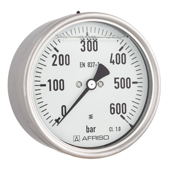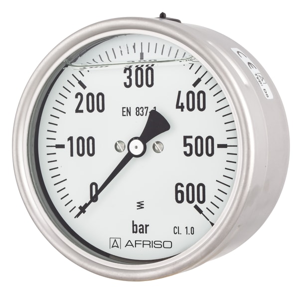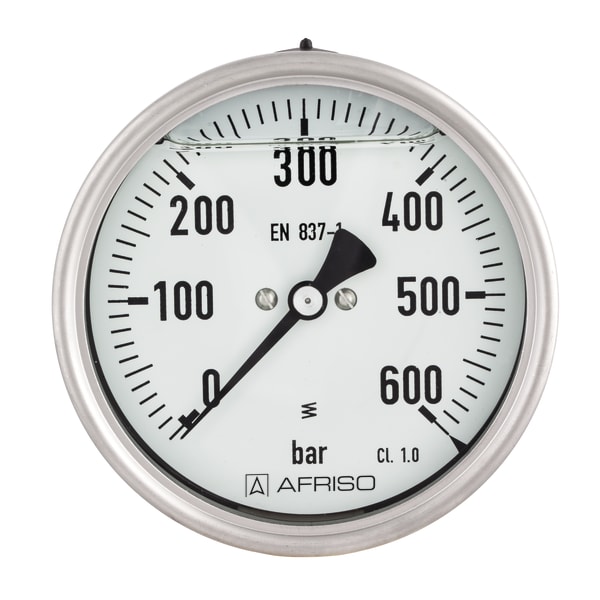 Products Our motto "Technology for Environmental Protection" has long been an inherent part of our product development philosophy and product range. We strive to improve the environment, to make processes which work with greater environmental compatibility and to avoid putting a strain on the environment. We offer you a multitude of innovative solutions, new products and smart concepts. More Informations Industries & Topics Industries & Topics Overview Fuel oil components Fuel oil components Overview Fast and clean oil filter change Avoiding fungal attacks in biofuel More performance with the sintered plastic sieve AFRISO Smart Home AFRISO Smart Home Overview Gateway HG 02 Products Products Overview AFRISOhome App Alexa Smart home applications Smart home applications Overview Leakage security Security Stand-alone applications Stand-alone applications Overview Getting started with AFRIShome Smart Home Craft 4.0 Craft 4.0 Overview OEM-Manifold systems Hydraulic Balancing Hydraulic Balancing Overview VarioQ Vario-DP Tank conversion Hygienic processes AFRISO Smart Home AFRISO Smart Home offers innovative solutions for intelligent home automation. With modern sensors and actuators, you can easily and conveniently control your home. More Informations Service-Center Service-Center Overview Service Contact persons Data exchange formats Catalogs Service-Center Flexible, cost-aware, on schedule, solution-oriented and fast – the AFRISO team always provides the decisive added value. More Informations Training & Events Training & Events Overview Exhibitions Exhibitions Overview SHK+E 2026, Essen IFH Intherm 2026, Nuremberg GET Nord 2026, Hamburg Schulungen & Trainings Schulungen & Trainings Overview Heizen mit flüssigen Brennstoffen Inhouse-Schulung - Heizen mit flüssigen Brennstoffen Inhouse-Schulung Heizölverbraucheranlagen Smart Home Experte Search Industrial technology Mechanical pressure measuring instruments RF160Gly D811 Images 5 RF160Gly D811 Rohrfeder-Glyzerinmanometer Typ D8 Variants Documents Info housing ⌀ (nominal size)160 mmConnectionG½Balignmentbottom backaccuracy class1,0standardEN 837-1 Benefits compact designcan be used in case of heavy vibrations and high, dynamic pressure loadslonger service life due to less wear and corrosion protection of the measuring systemNo steaming up of the inside of the window in case of outdoor applications Application For gaseous and liquid media which are not highly viscous, do not crystallise and do not attack copper alloys. For measurements in areas with high vibration levels and high, dynamic pressure loads. Variants Technical data Technical drawings Downloads Variants RangeMounting typeTypePart number-1/0 bardirectRF160Gly D81185251811-1/0.6 bardirectRF160Gly D81185252811-1/+1.5 bardirectRF160Gly D81185253811-1/+3 bardirectRF160Gly D81185254811-1/+5 bardirectRF160Gly D81185255811-1/+9 bardirectRF160Gly D81185256811-1/+15 bardirectRF160Gly D811852578110/0.6 bardirectRF160Gly D811852598110/1 bardirectRF160Gly D811852608110/1.6 bardirectRF160Gly D811852618110/2.5 bardirectRF160Gly D811852628110/4 bardirectRF160Gly D811852638110/6 bardirectRF160Gly D811852648110/10 bardirectRF160Gly D811852658110/16 bardirectRF160Gly D811852668110/25 bardirectRF160Gly D811852678110/40 bardirectRF160Gly D811852688110/60 bardirectRF160Gly D811852698110/100 bardirectRF160Gly D811852708110/160 bardirectRF160Gly D811852718110/250 bardirectRF160Gly D811852728110/400 bardirectRF160Gly D811852738110/600 bardirectRF160Gly D811852748110/1 000 bardirectRF160Gly D81185275811 in-stock items manufactured goods Technical data TypeD8Nominal size160 - 160accuracy class (EN 837-1/6)1,0ranges (EN 837-1/5)see ordering tableapplication areastatic load≤ 600 bar: Full scale value> 600 bar: ¾ x full scale valuedynamic load≤ 600 bar: 0.9 x full scale value> 600 bar: ⅔ x full scale valueshort-term≤ 600 bar: 1.3 x full scale value> 600 bar: Full scale valueOperating temperature rangeMedium: max. 60 °CAmbient: -20/+60 °CDegree of protectionIP 54 (EN 60529) with housing vent (≤ 25 bar) Standard design ConnectionBrass, bottom backMeasuring elementBourdon tube≤ 60 bar: "C" type tube, Copper alloy> 60 bar: helical tube, stainless steel 316 Ti/316 LmovementBrassDialAluminium, weißScaling blackPointerAluminium, schwarzHousingEdelstahl 304, with blow-outbayonet bezelEdelstahl 304windowInstrumentenglasfilling liquidglycerine (99.5 %) Technical drawings Click the corresponding image for detail views, additional information and dimension tables. bottom back connection Dimensions (mm) NG b2∅c c1 c2 e G g SW 100 49 6 3 20 26,5 G½B 81 22 160 50 6 3 20 26,5 G½B 82 22 Downloads ATEX Bescheinigung Manometer Certificates / DIBt approvals Industrial technology PDF English German Rohrfeder-Manometer Domestic Technology PDF English German AFRISO_EU-KONFORMITAETSERKLAERUNG_DRUCKGERAETE_DE.PDF Industrial technology PDF Download Montage Manometer Manuals Industrial technology PDF Download Rohrfeder-, Kapselfeder-, Plattenfeder-, Membranfedermanometer für Differenzdruck Manuals Industrial technology PDF Ukrainian German German RF160GLY_D811_852XX811.STP STEP 3D Modell Industrial technology STP Download Related products