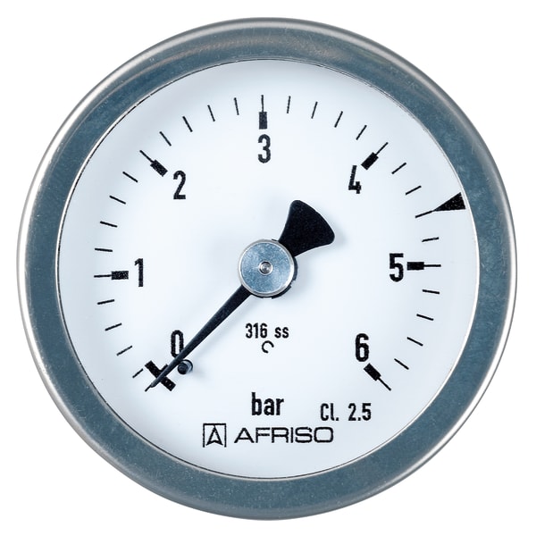 Products Our motto "Technology for Environmental Protection" has long been an inherent part of our product development philosophy and product range. We strive to improve the environment, to make processes which work with greater environmental compatibility and to avoid putting a strain on the environment. We offer you a multitude of innovative solutions, new products and smart concepts. More Informations Industries & Topics Industries & Topics Overview Fuel oil components Fuel oil components Overview Fast and clean oil filter change Avoiding fungal attacks in biofuel More performance with the sintered plastic sieve AFRISO Smart Home AFRISO Smart Home Overview Gateway HG 02 Products Products Overview AFRISOhome App Alexa Smart home applications Smart home applications Overview Leakage security Security Stand-alone applications Stand-alone applications Overview Getting started with AFRIShome Smart Home Craft 4.0 Craft 4.0 Overview OEM-Manifold systems Hydraulic Balancing Hydraulic Balancing Overview VarioQ Vario-DP Tank conversion Hygienic processes AFRISO Smart Home AFRISO Smart Home offers innovative solutions for intelligent home automation. With modern sensors and actuators, you can easily and conveniently control your home. More Informations Service-Center Service-Center Overview Service Contact persons Data exchange formats Catalogs Service-Center Flexible, cost-aware, on schedule, solution-oriented and fast – the AFRISO team always provides the decisive added value. More Informations Training & Events Training & Events Overview Exhibitions Exhibitions Overview SHK+E 2026, Essen IFH Intherm 2026, Nuremberg GET Nord 2026, Hamburg Schulungen & Trainings Schulungen & Trainings Overview Heizen mit flüssigen Brennstoffen Inhouse-Schulung - Heizen mit flüssigen Brennstoffen Inhouse-Schulung Heizölverbraucheranlagen Smart Home Experte Search ... RF40Ch D912 85012912 RF40Ch 0/2,5bar 1/8 ax K2,5 D912 Images 7 Back RF40Ch D912 | 85012912 Rohrfeder-Chemiemanometer Typ D9 manufactured goods Documents Info Range0/2.5 barhousing ⌀ (nominal size)40 mmConnectionG⅛Balignmentcentre backaccuracy class2,5standardEN 837-1Part no.85012912 Benefits for chemical and process engineering applicationsmeasuring system fully welded to housingextremely robust designfor temperatures of the medium of up to 200 °Ctightness-tested with heliumGOSSTANDART-certifiedEx version (optional) Application For corrosive gaseous and liquid media which are not highly viscous and do not crystallise; suitable for corrosive environments.! For measuring gas or vapour, observe the table "Selection Criteria as per EN 837-2"! Technical data Downloads Technical data TypeD9Nominal size40 - 40accuracy classEN 837-1/6NG 40: 2,5ranges (EN 837-1/5)see ordering tableapplication areastatic load: ¾ x full scale valuedynamic load: ⅔ x full scale valueshort-term: Full scale valueOperating temperature rangeMediumNG 40: max. 100 °CAmbient: -20/+60 °CTemperature performanceIndication error when the temperature of the measuring system deviates from the normal temperature of 20 °C:bei Temperaturzunahme ca. ± 0,4 %/10 K,falling temperature approx. ± 0.4 %/10 Kvom jeweiligen SkalenendwertDegree of protectionIP 54 (EN 60529) with housing vent (≤ 25 bar) Standard design ConnectionStainless steel 316 L, centre backMeasuring elementBourdon tube, stainless steel 316 Ti/316 L≤ 60 bar: "C" type tube> 60 bar: helical tubetightness-tested with heliummovementStainless steelDialAluminium, weißScaling blackPointerAluminium, schwarzHousingEdelstahl 304, with blow-outbayonet bezelNG 40: NG 40: Edelstahl 304windowNG 40: Kunststoff (PMMA) Downloads Montage Manometer Manuals Industrial technology PDF Download Rohrfeder-, Kapselfeder-, Plattenfeder-, Membranfedermanometer für Differenzdruck Manuals Industrial technology PDF Ukrainian German German AFRISO_EU-KONFORMITAETSERKLAERUNG_DRUCKGERAETE_DE.PDF Industrial technology PDF Download Related products