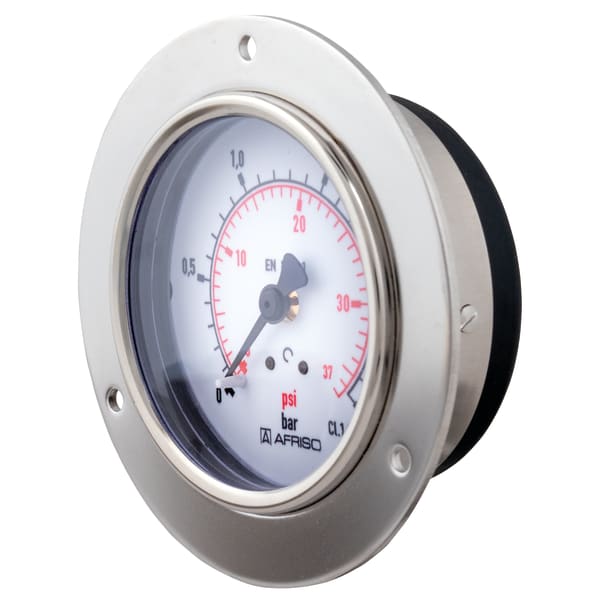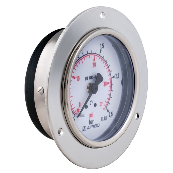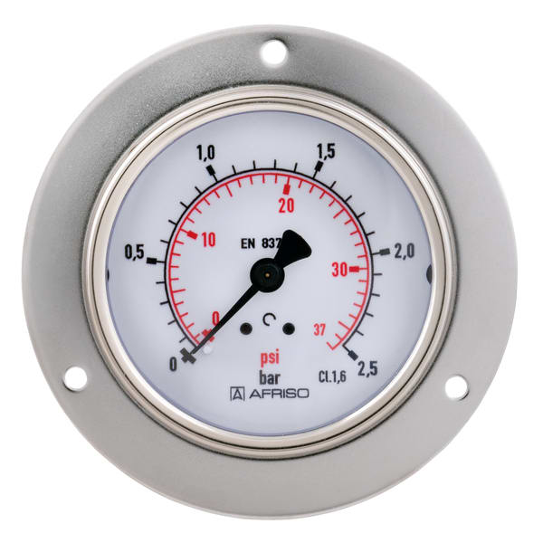 Products Our motto "Technology for Environmental Protection" has long been an inherent part of our product development philosophy and product range. We strive to improve the environment, to make processes which work with greater environmental compatibility and to avoid putting a strain on the environment. We offer you a multitude of innovative solutions, new products and smart concepts. More Informations Industries & Topics Industries & Topics Overview Fuel oil components Fuel oil components Overview Fast and clean oil filter change Avoiding fungal attacks in biofuel More performance with the sintered plastic sieve AFRISO Smart Home AFRISO Smart Home Overview Gateway HG 02 Products Products Overview AFRISOhome App Alexa Smart home applications Smart home applications Overview Leakage security Security Stand-alone applications Stand-alone applications Overview Getting started with AFRIShome Smart Home Craft 4.0 Craft 4.0 Overview OEM-Manifold systems Hydraulic Balancing Hydraulic Balancing Overview VarioQ Vario-DP Tank conversion Hygienic processes AFRISO Smart Home AFRISO Smart Home offers innovative solutions for intelligent home automation. With modern sensors and actuators, you can easily and conveniently control your home. More Informations Service-Center Service-Center Overview Service Contact persons Data exchange formats Catalogs Service-Center Flexible, cost-aware, on schedule, solution-oriented and fast – the AFRISO team always provides the decisive added value. More Informations Training & Events Training & Events Overview Exhibitions Exhibitions Overview SHK+E 2026, Essen IFH Intherm 2026, Nuremberg GET Nord 2026, Hamburg Schulungen & Trainings Schulungen & Trainings Overview Heizen mit flüssigen Brennstoffen Inhouse-Schulung - Heizen mit flüssigen Brennstoffen Inhouse-Schulung Heizölverbraucheranlagen Smart Home Experte Search Industrial technology Mechanical pressure measuring instruments RF50 D231 Images 7 RF50 D231 Rohrfeder-Standardmanometer Typ D2 Variants Documents Info housing ⌀ (nominal size)50 mmConnectionG¼Balignmentcentre backaccuracy class1,6standardEN 837-1 Benefits for pneumatic and heating system applications (NG 40 - 50 - 63)for domestic technology and mechanical engineering applications (NG 80 - 100 - 160)robust steel housingwindow with adjustable reference pointer (NG 80 - 100)with reference pointer on dial (NG 160)Accuracy class 1.6many customised versions available Application For gaseous and liquid media which are not highly viscous, do not crystallise and do not attack copper alloys.! For measuring gas or vapour, observe the table "Selection Criteria as per EN 837-2"! Variants Technical data Technical drawings Downloads Variants RangeMounting typeTypePart number-1/0 bar3-hole fixing, panel mounting bezelRF50 D231850512310/1 bar3-hole fixing, panel mounting bezelRF50 D231850602310/1.6 bar3-hole fixing, panel mounting bezelRF50 D231850612310/2.5 bar3-hole fixing, panel mounting bezelRF50 D231850622310/4 bar3-hole fixing, panel mounting bezelRF50 D231850632310/6 bar3-hole fixing, panel mounting bezelRF50 D231850642310/10 bar3-hole fixing, panel mounting bezelRF50 D231850652310/16 bar3-hole fixing, panel mounting bezelRF50 D231850662310/25 bar3-hole fixing, panel mounting bezelRF50 D231850672310/40 bar3-hole fixing, panel mounting bezelRF50 D231850682310/60 bar3-hole fixing, panel mounting bezelRF50 D231850692310/100 bar3-hole fixing, panel mounting bezelRF50 D231850702310/160 bar3-hole fixing, panel mounting bezelRF50 D231850712310/250 bar3-hole fixing, panel mounting bezelRF50 D231850722310/400 bar3-hole fixing, panel mounting bezelRF50 D23185073231 in-stock items manufactured goods Technical data TypeD2Nominal size50 - 50accuracy class (EN 837-1/6)1,6ranges (EN 837-1/5)see ordering tableapplication areastatic load: ¾ x full scale valuedynamic load: ⅔ x full scale valueshort-term: Full scale valueOperating temperature rangeMedium: max. 60 °CAmbient: -20/+60 °CTemperature performanceIndication error when the temperature of the measuring system deviates from the normal temperature of 20 °C:bei Temperaturzunahme ca. ± 0,4 %/10 K,falling temperature approx. ± 0.4 %/10 Kvom jeweiligen SkalenendwertDegree of protectionIP 32 (EN 60529) Standard design ConnectionBrass, centre backMeasuring elementBourdon tube, Copper alloy≤ 60 bar: "C" type tube> 60 bar: helical tubemovementBrassDialNG 50: Kunststoff, weißScalingD231: D231: dual scale, bar outer, black – psi inner, redPointerNG 50: Kunststoff, schwarzHousingStahlblech, schwarzpush on bezelNG 50: windowNG 50: Kunststoff, eingeclipst Technical drawings Click the corresponding image for detail views, additional information and dimension tables. NG 40/50/63 – centre back connection, 3-hole fixing, panel mounting bezel Dimensions (mm) NG b2∅c c1 c2 d1 d2 d3 d4 d5 g1 G s1 s2 SW 40 26 4 2 10 51 61 3,6 41 45 42,5 G⅛B 2,5 2 12 50 27,5 5 2 13 60 71 3,6 50 54 49 G¼B 2,5 2 14 63 30,3 5 2 13 75 85 3,6 63 66,5 51,3 G¼B 2,5 2 14 Downloads AFRISO_EU-KONFORMITAETSERKLAERUNG_DRUCKGERAETE_DE.PDF Industrial technology PDF Download Montage Manometer Manuals Industrial technology PDF Download Rohrfeder-, Kapselfeder-, Plattenfeder-, Membranfedermanometer für Differenzdruck Manuals Industrial technology PDF Ukrainian German German Related products