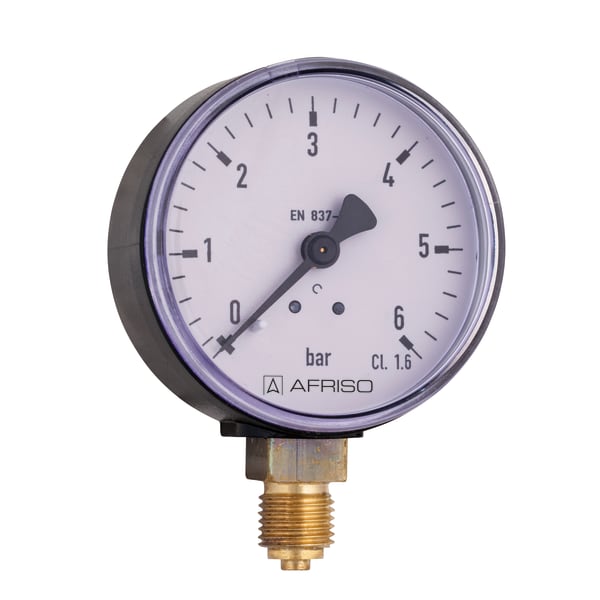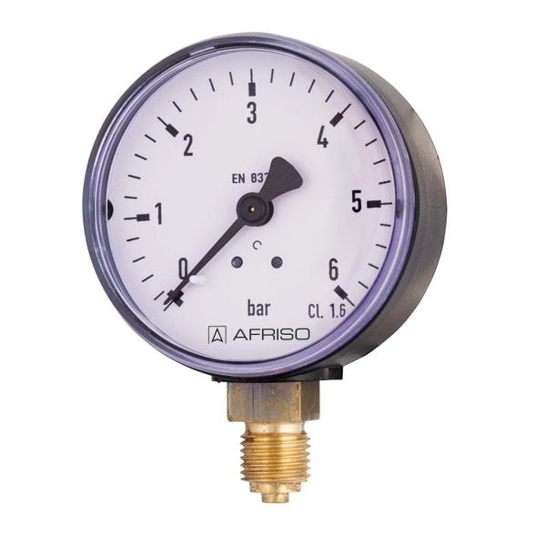 Products Our motto "Technology for Environmental Protection" has long been an inherent part of our product development philosophy and product range. We strive to improve the environment, to make processes which work with greater environmental compatibility and to avoid putting a strain on the environment. We offer you a multitude of innovative solutions, new products and smart concepts. More Informations Industries & Topics Industries & Topics Overview Fuel oil components Fuel oil components Overview Fast and clean oil filter change Avoiding fungal attacks in biofuel More performance with the sintered plastic sieve AFRISO Smart Home AFRISO Smart Home Overview Gateway HG 02 Products Products Overview AFRISOhome App Alexa Smart home applications Smart home applications Overview Leakage security Security Stand-alone applications Stand-alone applications Overview Getting started with AFRIShome Smart Home Craft 4.0 Craft 4.0 Overview OEM-Manifold systems Hydraulic Balancing Hydraulic Balancing Overview VarioQ Vario-DP Tank conversion Hygienic processes AFRISO Smart Home AFRISO Smart Home offers innovative solutions for intelligent home automation. With modern sensors and actuators, you can easily and conveniently control your home. More Informations Service-Center Service-Center Overview Service Contact persons Data exchange formats Catalogs Service-Center Flexible, cost-aware, on schedule, solution-oriented and fast – the AFRISO team always provides the decisive added value. More Informations Training & Events Training & Events Overview Exhibitions Exhibitions Overview SHK+E 2026, Essen IFH Intherm 2026, Nuremberg GET Nord 2026, Hamburg Schulungen & Trainings Schulungen & Trainings Overview Heizen mit flüssigen Brennstoffen Inhouse-Schulung - Heizen mit flüssigen Brennstoffen Inhouse-Schulung Heizölverbraucheranlagen Smart Home Experte Search ... RF63 D101 85114101 RF63 0/6bar 1/4 rad Kl.1,6 D101 Images 5 Back RF63 D101 | 85114101 Rohrfeder-Standardmanometer Typ D1 in-stock items Documents Info Range0/6 barhousing ⌀ (nominal size)63 mmConnectionG¼Balignmentbottomaccuracy class1,6standardEN 837-1Part no.85114101 Benefits for pneumatic and heating system applicationsDesign as per EN 837-1Accuracy class 1.6corrosion-resistant, highly impact-resistant plastic housingmany customised versions available Application For gaseous and liquid media which are not highly viscous, do not crystallise and do not attack copper alloys.! For measuring gas or vapour, observe the table "Selection Criteria as per EN 837-2"! Technical data Technical drawings Downloads Technical data TypeD1Nominal size63 - 63accuracy class (EN 837-1/6)1,6ranges (EN 837-1/5)see ordering tableapplication areastatic load: ¾ x full scale valuedynamic load: ⅔ x full scale valueshort-term: Full scale valueOperating temperature rangeMedium: max. 60 °CAmbient: -20/+60 °CTemperature performanceIndication error when the temperature of the measuring system deviates from the normal temperature of 20 °C:bei Temperaturzunahme ca. ± 0,4 %/10 K,falling temperature approx. ± 0.4 %/10 Kvom jeweiligen SkalenendwertDegree of protectionIP 32 (EN 60529) Standard design ConnectionBrass, bottomMeasuring elementBourdon tube, Copper alloy≤ 60 bar: "C" type tube> 60 bar: helical tubemovementBrassDialKunststoff, weißScaling blackPointerKunststoff, schwarzHousingABS, schwarz, highly impact-resistant and corrosion-resistantwindowKunststoff, eingeclipstNG 63: Technical drawings Click the corresponding image for detail views, additional information and dimension tables. NG 40/50/63 – bottom connection Dimensions (mm) NG a b∅c c1 c2 G h s SW 40 9,5 25 4 2 10 G⅛B 36 3 12 50 10,3 26,8 5 2 13 G¼B 45 3,8 14 63 9,8 29,7 5 2 13 G¼B 51,5 3,7 14 Downloads Montage Manometer Manuals Industrial technology PDF Download Rohrfeder-, Kapselfeder-, Plattenfeder-, Membranfedermanometer für Differenzdruck Manuals Industrial technology PDF Ukrainian German German AFRISO_EU-KONFORMITAETSERKLAERUNG_DRUCKGERAETE_DE.PDF Industrial technology PDF Download Related products