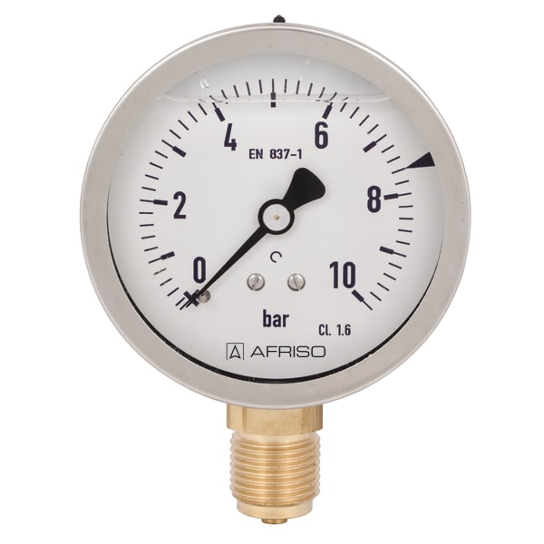Products Our motto "Technology for Environmental Protection" has long been an inherent part of our product development philosophy and product range. We strive to improve the environment, to make processes which work with greater environmental compatibility and to avoid putting a strain on the environment. We offer you a multitude of innovative solutions, new products and smart concepts. More Informations Industries & Topics Industries & Topics Overview Fuel oil components Fuel oil components Overview Fast and clean oil filter change Avoiding fungal attacks in biofuel More performance with the sintered plastic sieve AFRISO Smart Home AFRISO Smart Home Overview Gateway HG 02 Products Products Overview AFRISOhome App Alexa Smart home applications Smart home applications Overview Leakage security Security Stand-alone applications Stand-alone applications Overview Getting started with AFRIShome Smart Home Craft 4.0 Craft 4.0 Overview OEM-Manifold systems Hydraulic Balancing Hydraulic Balancing Overview VarioQ Vario-DP Tank conversion Hygienic processes AFRISO Smart Home AFRISO Smart Home offers innovative solutions for intelligent home automation. With modern sensors and actuators, you can easily and conveniently control your home. More Informations Service-Center Service-Center Overview Service Contact persons Data exchange formats Catalogs Service-Center Flexible, cost-aware, on schedule, solution-oriented and fast – the AFRISO team always provides the decisive added value. More Informations Training & Events Training & Events Overview Exhibitions Exhibitions Overview SHK+E 2026, Essen IFH Intherm 2026, Nuremberg GET Nord 2026, Hamburg Schulungen & Trainings Schulungen & Trainings Overview Heizen mit flüssigen Brennstoffen Inhouse-Schulung - Heizen mit flüssigen Brennstoffen Inhouse-Schulung Heizölverbraucheranlagen Smart Home Experte Search ... RF80Gly D701 85165701 RF80Gly 0/10bar 1/2 rad Kl.1,6 D701 Images 5 Back RF80Gly D701 | 85165701 Rohrfeder-Glyzerinmanometer Typ D7 manufactured goods Documents Info Range0/10 barhousing ⌀ (nominal size)80 mmConnectionG½Balignmentbottomaccuracy class1,6standardEN 837-1Part no.85165701 Benefits robust stainless steel housingcan be used in case of heavy vibrations and high, dynamic pressure loadslonger service life due to less wear and corrosion protection of the measuring systemNo steaming up of the inside of the window in case of outdoor applications Application For gaseous and liquid media which are not highly viscous, do not crystallise and do not attack copper alloys. For measurements in areas with high vibration levels and high, dynamic pressure loads. Technical data Technical drawings Downloads Technical data TypeD7Nominal size80 - 80accuracy class (EN 837-1/6)1,6ranges (EN 837-1/5)see ordering tableapplication areastatic load: ¾ x full scale valuedynamic load: ⅔ x full scale valueshort-term: Full scale valueOperating temperature rangeMedium: max. 60 °CAmbient: -20/+60 °CDegree of protectionIP 54 (EN 60529) with housing vent (≤ 25 bar) Standard design ConnectionBrass, bottomMeasuring elementBourdon tube≤ 60 bar: "C" type tube> 60 bar: helical tubemovementBrassDialAluminium, weißScaling: blackRF80Gly: Aluminium, schwarzHousingEdelstahl 304, with blow-outcrimped bezelEdelstahl 304windowKunststofffilling liquidglycerine (99.5 %) Technical drawings Click the corresponding image for detail views, additional information and dimension tables. NG 80/100 – bottom connection Dimensions (mm) NG a b∅c c1 c2 D G h s SW 80 Ms 12,2 33,5 6 3 20 85 G½B 71 7 22 80 VA 12,2 33,5 6 3 20 85 G½B 79,5 7 22 100 Ms 12,2 33,5 6 3 20 106 G½B 81 7 22 100 VA 11,8 33,5 6 3 20 106 G½B 90 7 22 Downloads Montage Manometer Manuals Industrial technology PDF Download Rohrfeder-, Kapselfeder-, Plattenfeder-, Membranfedermanometer für Differenzdruck Manuals Industrial technology PDF Ukrainian German German AFRISO_EU-KONFORMITAETSERKLAERUNG_DRUCKGERAETE_DE.PDF Industrial technology PDF Download RF80GLY_D701_851XX701.STP STEP 3D Modell Industrial technology STP Download Related products