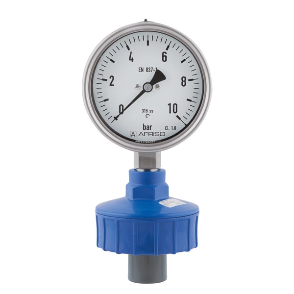 Products Our motto "Technology for Environmental Protection" has long been an inherent part of our product development philosophy and product range. We strive to improve the environment, to make processes which work with greater environmental compatibility and to avoid putting a strain on the environment. We offer you a multitude of innovative solutions, new products and smart concepts. More Informations Industries & Topics Industries & Topics Overview Fuel oil components Fuel oil components Overview Fast and clean oil filter change Avoiding fungal attacks in biofuel More performance with the sintered plastic sieve AFRISO Smart Home AFRISO Smart Home Overview Gateway HG 02 Products Products Overview AFRISOhome App Alexa Smart home applications Smart home applications Overview Leakage security Security Stand-alone applications Stand-alone applications Overview Getting started with AFRIShome Smart Home Craft 4.0 Craft 4.0 Overview OEM-Manifold systems Hydraulic Balancing Hydraulic Balancing Overview VarioQ Vario-DP Tank conversion Hygienic processes AFRISO Smart Home AFRISO Smart Home offers innovative solutions for intelligent home automation. With modern sensors and actuators, you can easily and conveniently control your home. More Informations Service-Center Service-Center Overview Service Contact persons Data exchange formats Catalogs Service-Center Flexible, cost-aware, on schedule, solution-oriented and fast – the AFRISO team always provides the decisive added value. More Informations Training & Events Training & Events Overview Exhibitions Exhibitions Overview SHK+E 2026, Essen IFH Intherm 2026, Nuremberg GET Nord 2026, Hamburg Search Industrial technology Process separators: chemical seals MD 11 Images 5 MD 11 Membrandruckmittler Kunststoffausführung Variants Documents Benefits robust plastic versionsuitable for many chemicalsperfect solution for waste watervarious materials available Application For mounting to Bourdon tube pressure gauges or pressure switches. Specially for polluted waste water, fertilisers, corrosive media. Variants Technical data Downloads Variants Diaphragm seal bodyprocess connection, standardProcess connectionInstrument connectionNominal diameterminimum range* (in bar) at nominal sizePart no.63100160DMUPVCG¼G¼1.6 bar1.6 bar1.6 bar33970PVCG½G½1.6 bar1.6 bar1.6 bar33971 in-stock items manufactured goods Technical data Process connectionPVCFemale thread G¼diaphragmEPDM, TFM-coatedInternalInstrument connectionFemale thread G¼PP-GF30pressure transmission liquidGlycerine (FM 03)pressure rangesee ordering tableNominal pressurePN 10Operating temperature rangePVC: 0/60 °C Downloads Druckmittler PDF Italian English German Related products